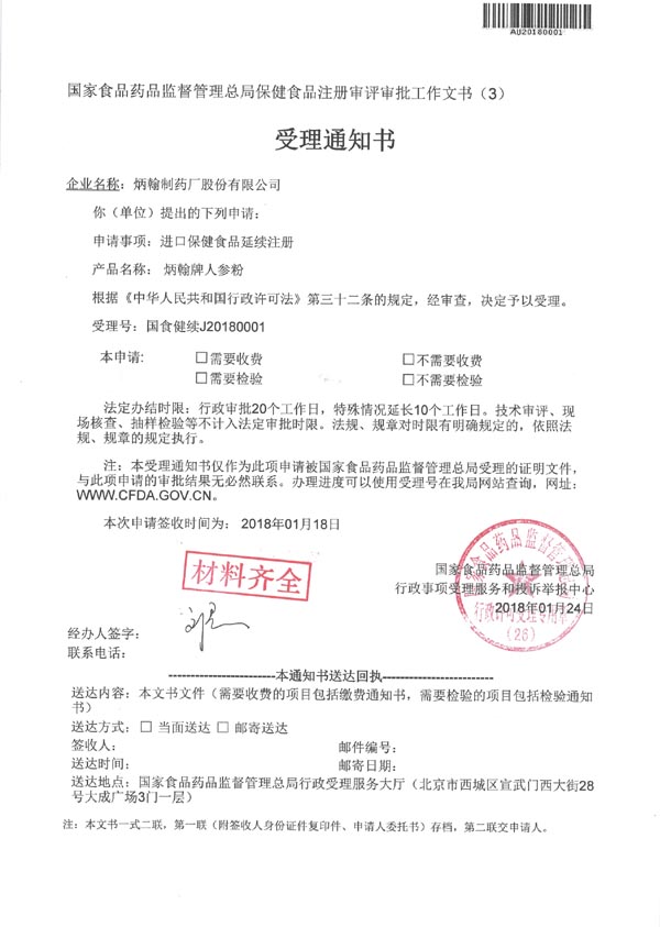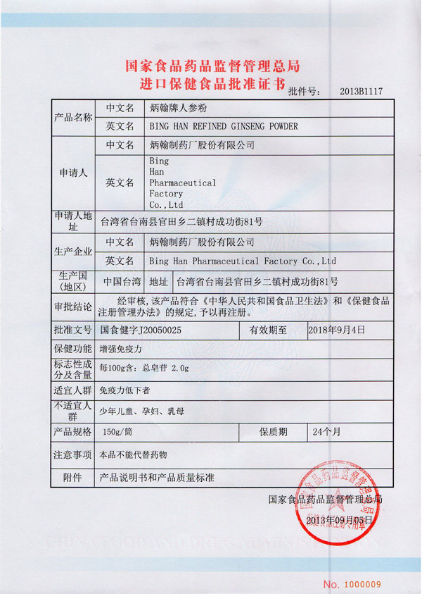 中国食品药品监督管理局颁发权威进口保健品批文